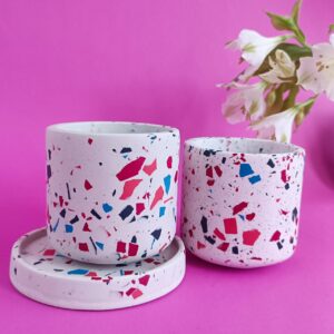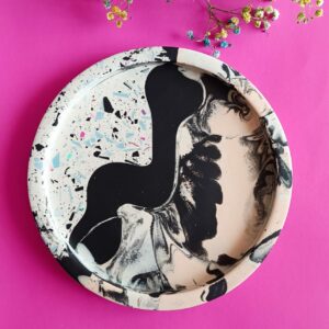 Wszystkie produkty: czy to z gipsu, czy glinki, czy kamieni naturalnych, powstają w mojej domowej pracowni. Wybieram zestawienia kolorystyczne i wzory, a później przenoszę je na moje płótno – choć nie dosłownie, bo akurat malarka ze mnie przeciętna…