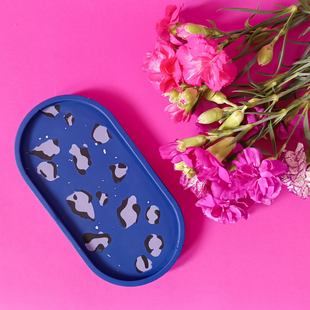 A może tak niebieska pantera? To idealne podstawka na biżuterię, świeczki, biurowe drobiazgi, czy nawet kubek.