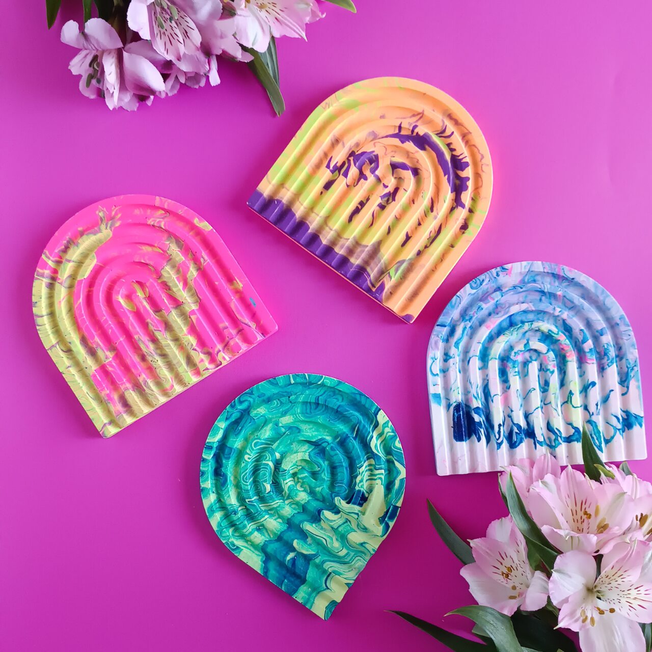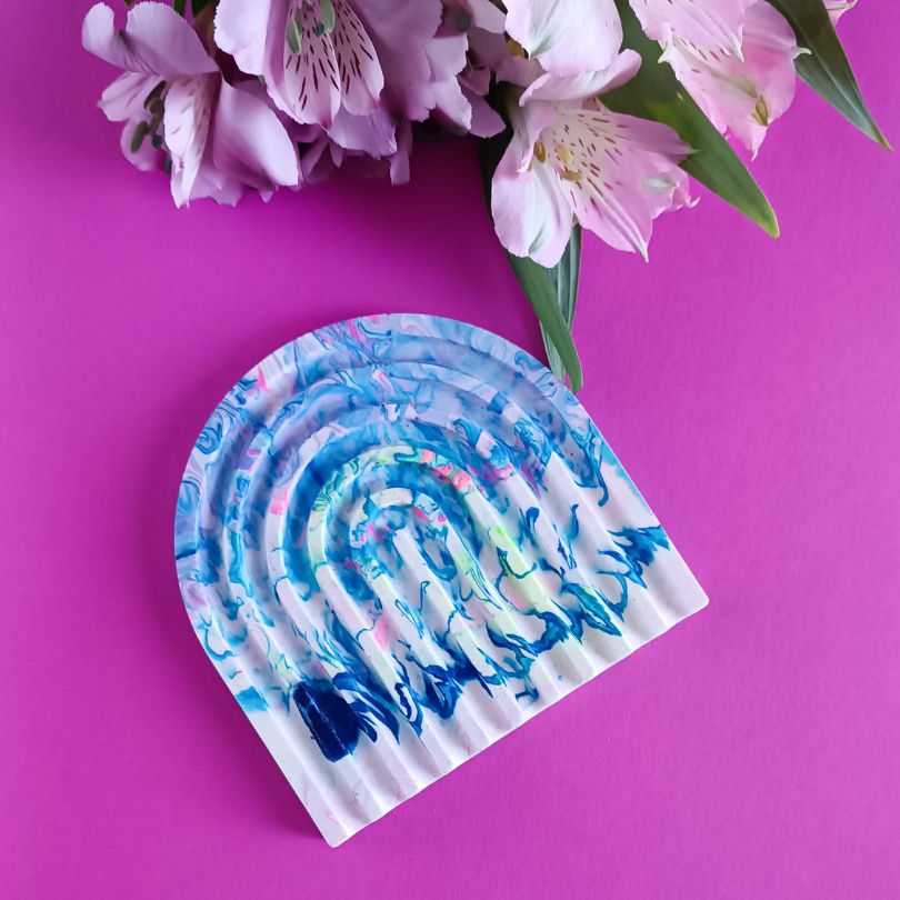 Marmurowa podstawka na biżuterię, świece lub inne bibeloty. Hipnotyzujący wzór i żywe barwy wnoszą energię do każdego pomieszczenia!